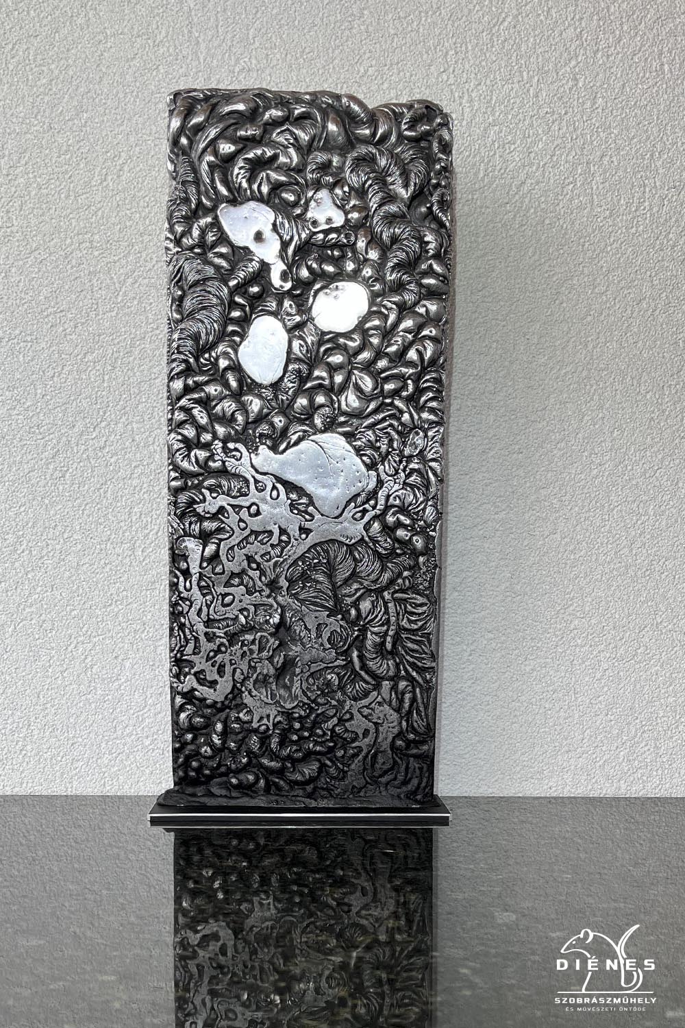 Talapzat: Sárgaréz lap (0, 4 cm x 12,7 cm x 25,2 cm) – fekete, festett